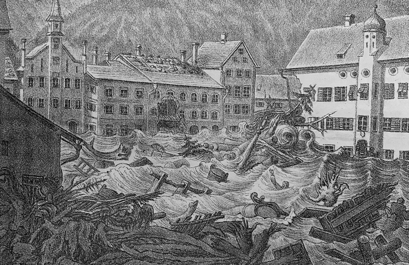 Im Sommer des Jahres 1873 ereignete sich ein tragisches Hochwasser in Immenstadt. Durch den tagelangen Regen, staute sich das Wasser im Steigbachtal und der Steigbach schwoll folglich an – der Regen war wie eine Wand. Der kleine Bach entwickelte sich zu einer Flut, die mit Tosen in Richtung Stadt floss und alles mit sich riss, was sich ihm in den Weg stellte. Selbst das Wehr der Bindfadenfabrik hielt den Wassermassen nicht stand. Am Marienplatz fiel die Mariensäule dem Hochwasser zum Opfer. Elf Menschen mussten ihr Leben in den Fluten lassen.